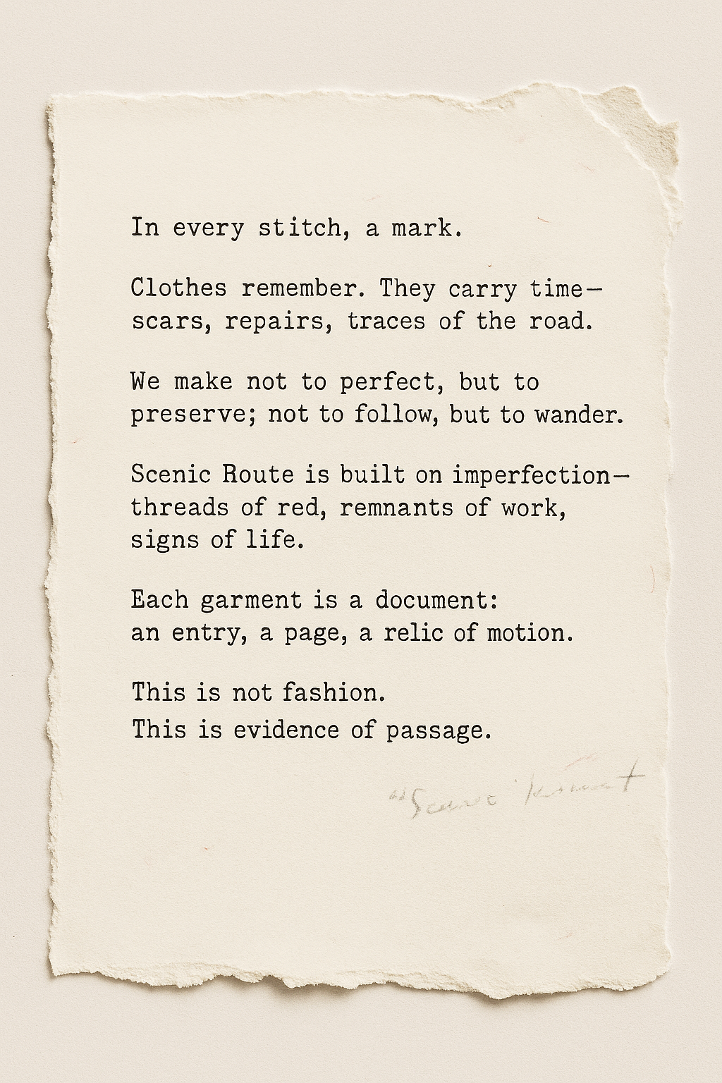 Scenic Route is a clothing project shaped by atmosphere, philosophy, and craft.